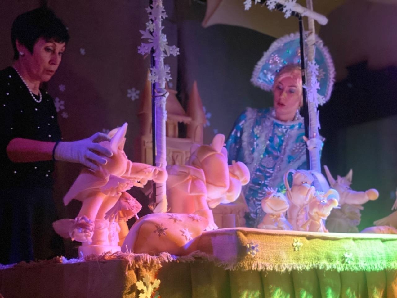 После спектакля ребятишек и их родителей ждет интермедия с дедом Морозом и Снегурочкой, а также небольшой подарок.