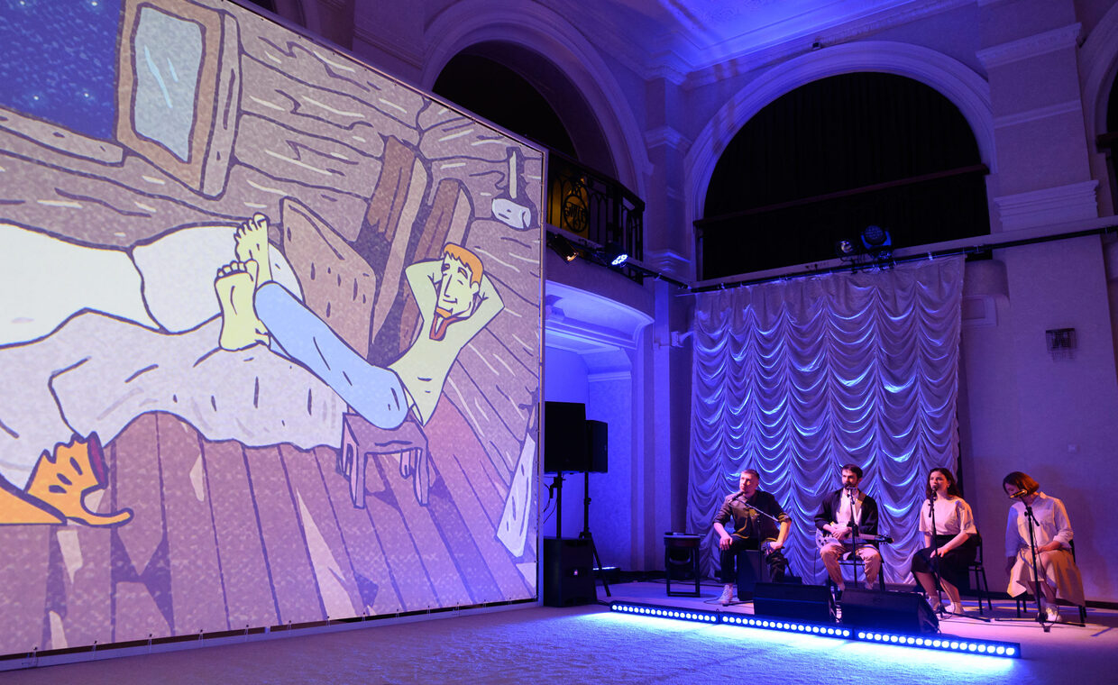 «Злата за Кузьму» будет играться в фойе театра. Форма у спектакля необычная. У Владимира Бутакова возникла идея адаптировать в театре такой любимый детьми жанр, как мультфильм. Он решил использовать прием из времен немого кино. Тогда за экраном сидел оркестр и озвучивал фильм. В «Злате за Кузьму» артисты будут на глазах у зрителей, в реальном времени, озвучивать мультик, нарисованный Владимиром Бутаковым. Сложится две истории – та, что на экране, и та, что возникнет между занятыми в озвучке персонажами.