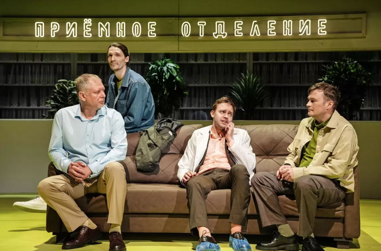 Четверо мужчин в приемном покое роддома, волнуясь, ждут новостей и разговаривают о своих семьях, жизни и судьбе.