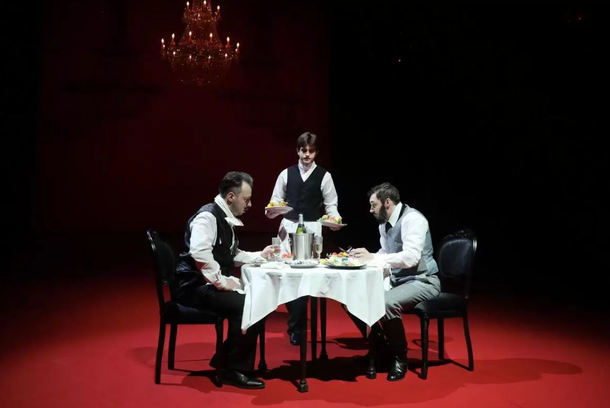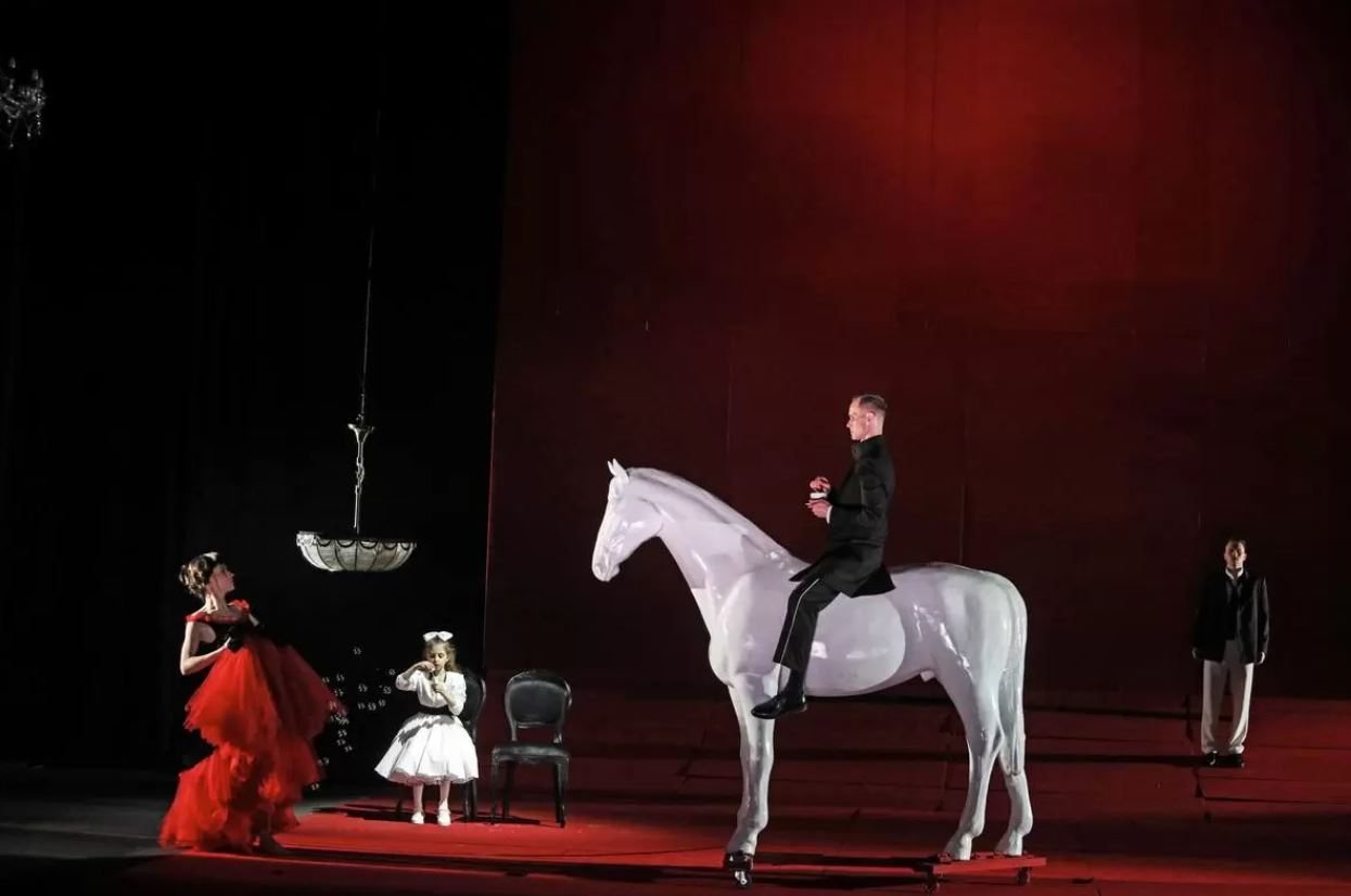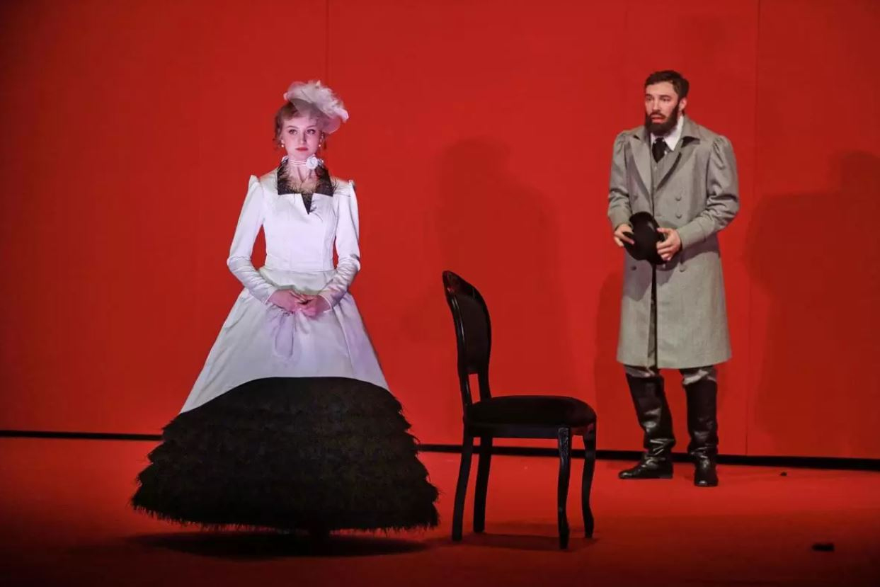 Постановочная команда спектакля решила поменять привычную оптику и взглянуть на историю отношений Анны Карениной и Алексея Вронского глазами окружающего их общества. Общества, где у каждого свой взгляд на брак, супружеские обязанности и любовь.