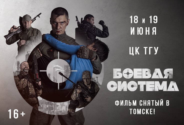 В ЦК ТГУ пройдет премьера полнометражного художественного фильма «Боевая система», режиссером которого стал Виталий Доронкин, а сам фильм полностью был сделан в Томске. Авторы запланировали четыре премьерных показа.